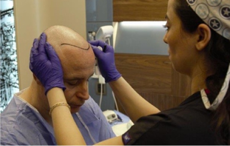 important stages in a hair transplantation. The natural line of